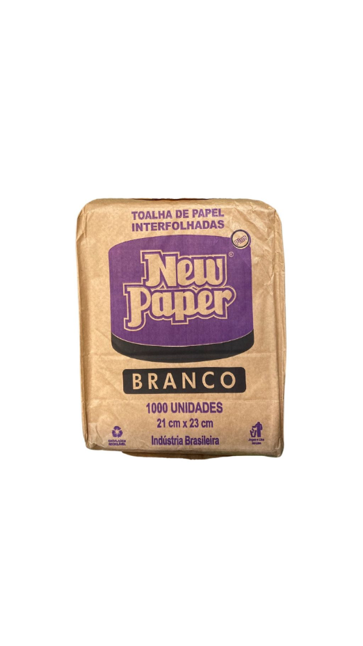 Papel toalha interfolhado New Paper, com 1.000 folhas brancas no tamanho 20 x 21 cm. Fabricado com material de alta qualidade, ideal para uso profissional.