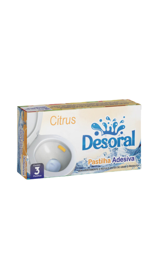A Pastilha Adesiva Desoral Citrus vem em embalagem com 3 unidades e é ideal para manter o vaso sanitário sempre limpo e perfumado. Sua aplicação é prática e higiênica, sem necessidade de suporte plástico. Cada pastilha adere diretamente à louça, liberando fragrância a cada descarga, além de ajudar a prevenir o acúmulo de resíduos e odores desagradáveis. A fragrância cítrica oferece um perfume leve e refrescante ao ambiente.