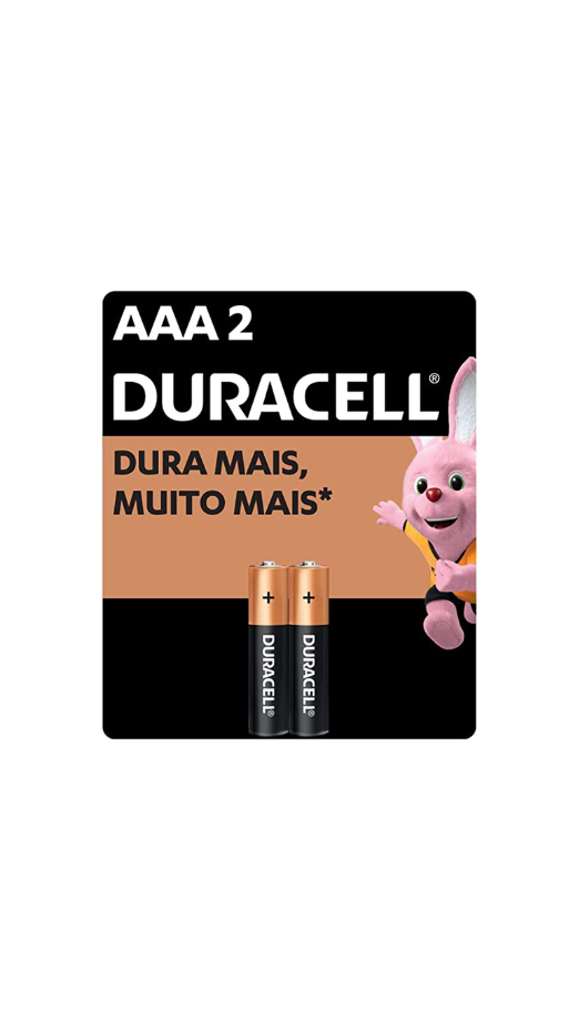 Pilha alcalina AAA (palito) da marca Duracell. Energia de longa duração e desempenho confiável para pequenos dispositivos. Embalagem com 2 unidades.