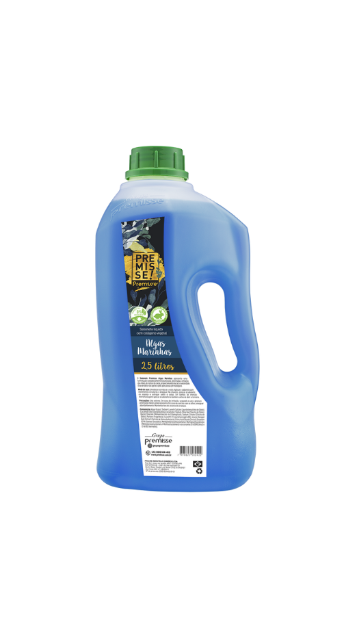 Sabonete líquido perolado de 2,5 litros da Premisse, com fragrância de Algas Marinhas, ideal para higiene das mãos, oferecendo limpeza suave, hidratação e um perfume fresco e revigorante.