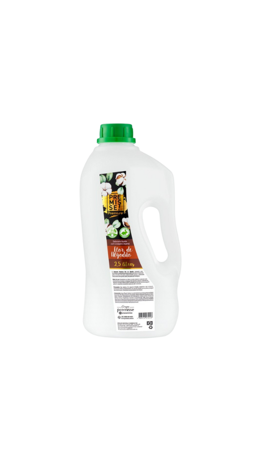 Sabonete líquido perolado de 2,5 litros da Premisse, com fragrância de Flor de Algodão, ideal para higiene das mãos, oferecendo limpeza suave, hidratação e um perfume delicado e reconfortante.