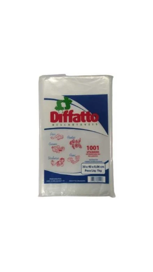 Pacote com 2 kg de sacos plásticos virgens de 30x40cm e espessura de 0,06mm, ideais para embalar alimentos, produtos maiores e itens que exigem alta higiene e resistência.