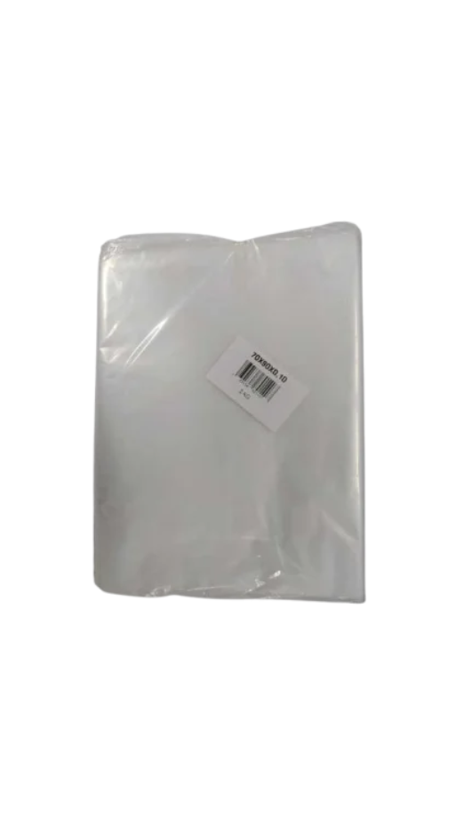 Pacote com 2 kg de sacos plásticos virgens de 70x90cm e espessura super reforçada de 0,10mm, ideais para embalar produtos grandes, pesados ou que exigem máxima proteção e higiene.