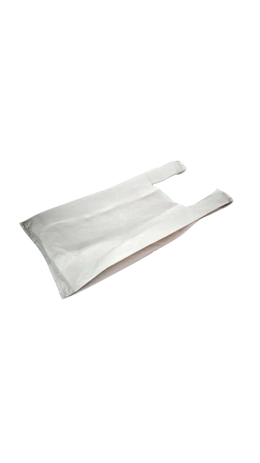 Fabricada com material plástico reciclado, esta sacola contribui ativamente para a redução do impacto ambiental, promovendo a economia circular. Apesar de ser reciclada, sua cor branca oferece um visual limpo e neutro, que se adapta a diversas marcas e produtos. Possui a resistência adequada para o transporte de compras leves a moderadas, minimizando o risco de rasgos. É uma opção consciente que atende às necessidades do varejo, ao mesmo tempo em que demonstra preocupação com o meio ambiente.