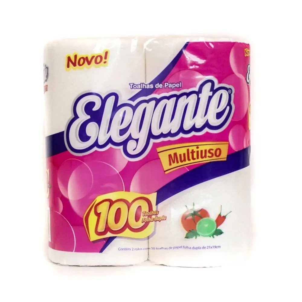 Pacote com 2 rolos da marca Elegante. A marca mais conhecida e acessível, com toalhas de papel folha dupla de alta qualidade, maciez e conforto. trabalhando com composição 100% celulose, gofrado e picotado.