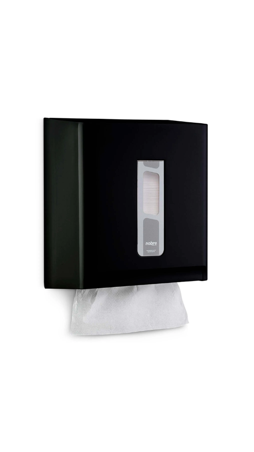 O Toalheiro Nobre Street é confeccionado em plástico ABS de alta resistência, com acabamento na cor preta, proporcionando um visual sofisticado e discreto. Projetado para acomodar papel interfolhado, é a escolha perfeita para ambientes comerciais, escritórios, clínicas, escolas, restaurantes e outros locais com grande circulação. Com tampa frontal transparente, facilita a visualização do nível de papel e torna a reposição mais eficiente.