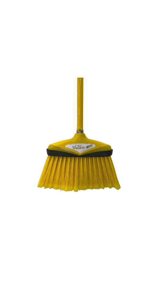 Vassoura multiuso com cerdas resistentes e base durável, ideal para limpezas do dia a dia em diversos tipos de piso.