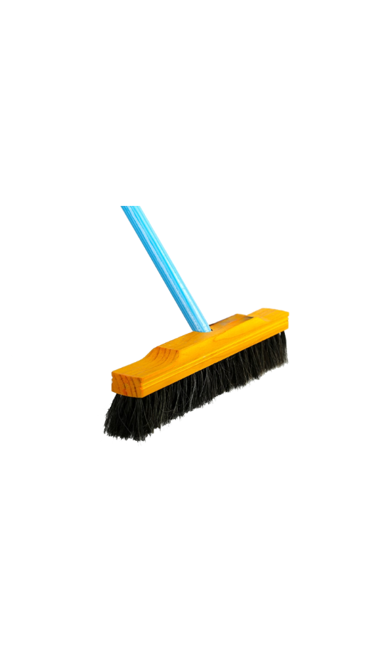 Utilize a vassoura em pisos secos para varrer pó fino e sujeira leve. Evite o uso em superfícies muito molhadas ou com detritos abrasivos. Limpe as cerdas regularmente para remover o acúmulo de sujeira e prolongar a vida útil da vassoura. Armazene em local seco, pendurada ou com as cerdas para cima, para evitar deformações.