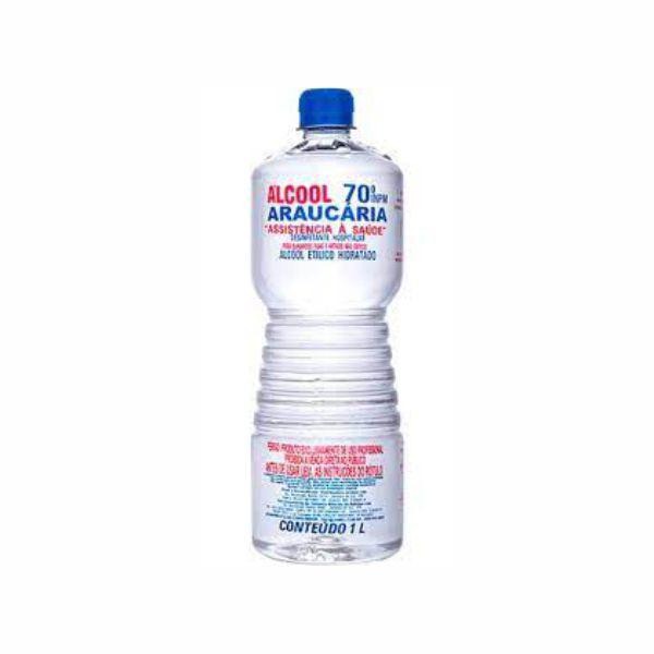 1L de álcool etílico 70% INPM (Araucária), um desinfetante hospitalar indicado para a limpeza e desinfecção de superfícies em ambientes de saúde, como hospitais, clínicas e consultórios.